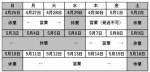弊社のゴールデンウィーク休業についてご案内いたします。